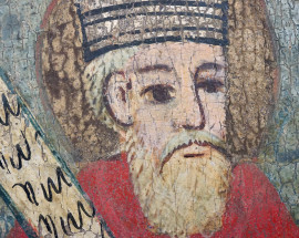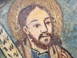 Icona ortodossa raffigurante Aronne e Mosè, olio su tavola, XIX-XX secolo, cm 28x38 (difetti)