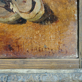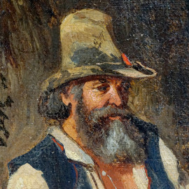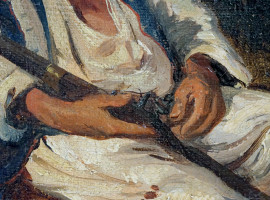 Il brigante, olio su tela, firmato e datato in basso a destra Fil Palizzi [18]65, cm 31x24, entro cornice