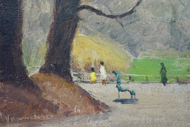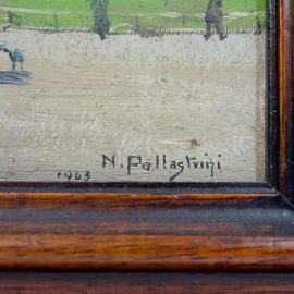 Il parco, olio su cartone, firmato e datato in basso a destra N. Pollastrini 1963, cm 24x18, entro cornice