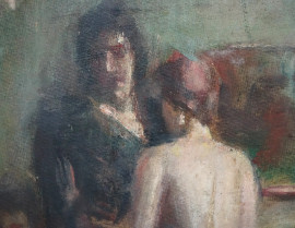 Interno a Parigi, olio su cartone, cm 24.5x19, firmato Villani, entro cornice