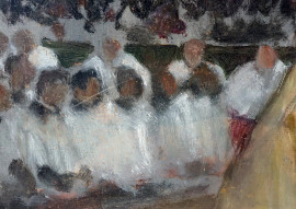 La messa, olio su tela, cm 31x40, XX secolo, entro cornice
