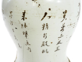 Lampada a due luci in ceramica bianca e metallo dorato con decorazione policroma a cineserie, XX secolo, altezza cm 96