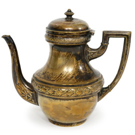 Lotto composto da 4 oggetti in metallo argentato, altezza max cm 17 (difetti e mancanze)