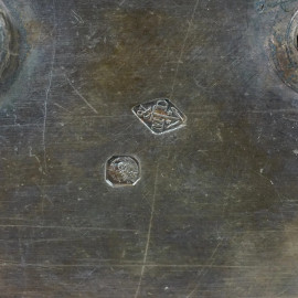 Lotto composto da due saliere in argento cesellato con coppette in vetro, Francia, XIX-XX secolo, cm 21,5x18,x7, peso gr. 477 (mancanze)