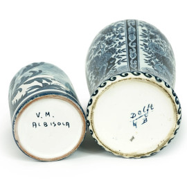 Lotto composto da un vaso Delft ed un bicchiere Albisola, in maiolica a smalto bianco e blu, h max cm 21, (lievi difetti)