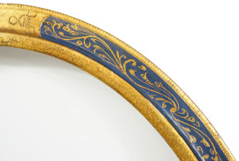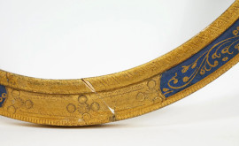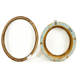 Lotto di 2 cornici in legno intagliato e dorato ad assetto ovale, epoche diverse, misura max ingombro cm 33,2x27,2