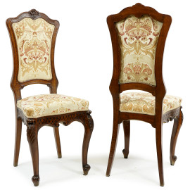Lotto di 2 sedie del XIX secolo in legno intagliato, cm h 107x34,5x40