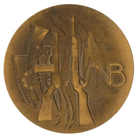 Lotto di cinque medaglie commemorative del periodo socialista, Cecoslovacchia, misure max cm 7,4x8,2, entro scatole