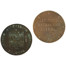 Lotto di due medaglie dell'Istituto ortopedico Rizzoli di Bologna, Alessandro Codivilla e Vittorio Putti, diametro max cm 9,5