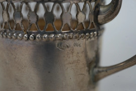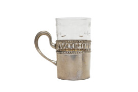 Lotto di sei bicchierini in vetro controtagliato e argento, inghiterra, XX secolo, altezza cm 6,5, peso gr. 86 (sbeccature)