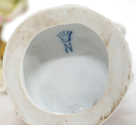 Lotto di sei statuine in porcellana, marcate N coronata sotto la base, XX secolo, h max cm 22,5, (difetti e restauti)