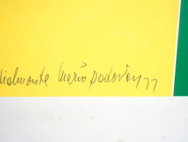 Lotto di tre dipinti a tecnica mista, firmati e datati Mario Padovan [19]77, cm 59,5x80, entro cornici