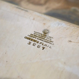 Lotto di tre oggetti in metallo argentato, h max cm 17,5, (difetti)