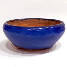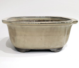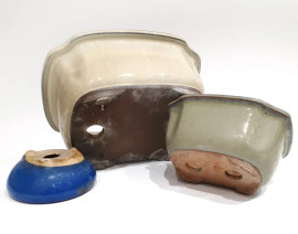 Lotto di tre vasi cinesi vintage Yixing “shin-shin-to” per bonsai in terracotta e smalto, diverse forme e misure, larghezza massima cm 20