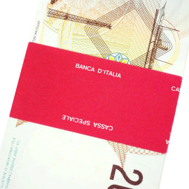Lotto di una mazzetta da 100 banconote consecutive da 2000 Lire Marconi, con fascetta Banca d'Italia Cassa speciale
