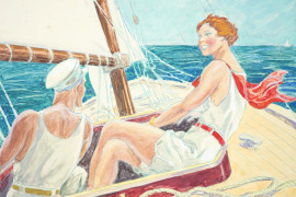 Luigi Bompard (Bologna, 1879 – Roma, 1953), Il bello dell'avventura è…un'avventura, acquerello su cartoncino, cm 33x25