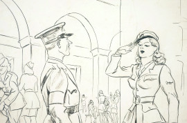 Luigi Bompard (Bologna, 1879 – Roma, 1953), Trombettiera, la elogio per la sua dedizione al servizio, china su carta, cm 33x26