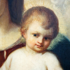 Madonna con il Bambino, olio su tela, XIX secolo, cm 99,5x74,5, entro cornice