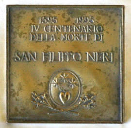 Medaglia in bronzo 4 centenario morte San Filippo Neri 1995 incisore Veroi, con libro sulla vita di S. Filippo Neri Edizione del 1937