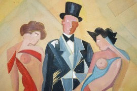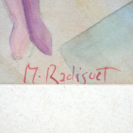 Monsieur et deux dames, tecnica mista su carta, firmato in basso a destra M. Radiguet, misure con passpartout cm 37,5x30,5, entro cornice