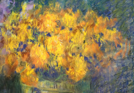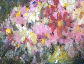 Natura morta con vasi di fiori, pastello su cartone, firmato, cm 48,5x63, entro cornice
