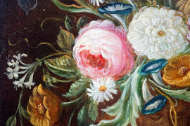 Natura morta con vaso di fiori, olio su tavola, XIX secolo, cm 45x30