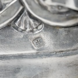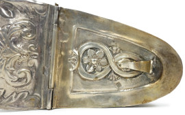 Navicella in argento sbalzato e cesellato, Napoli, XIX secolo, cm 9,5x14,5, peso gr. 140, (segni del tempo)