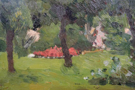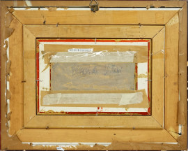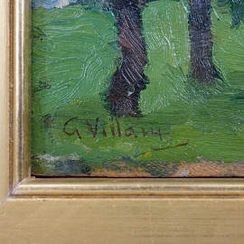 Nel parco, olio su tavoletta, cm 10x19.5, firmato Villani, entro cornice