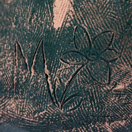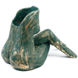 Nudo femminile, scultura in terracotta dipinta in verde e dorata, cm h 43, siglata