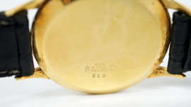 Orologio da polso Helvetia, con cassa in oro giallo 18 kt, cinturino in pelle non pertinente, diametro della cassa cm 3.6, (segni di utilizzo, da revisionare)