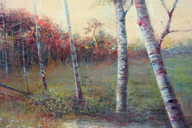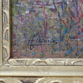 Paesaggio con alberi, olio su tela, firmato in basso a sinistra, cm 34x51, entro cornice.