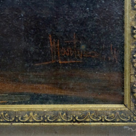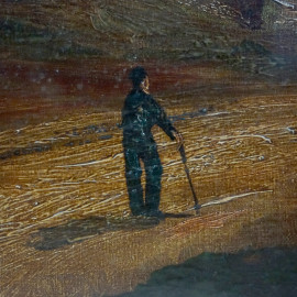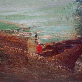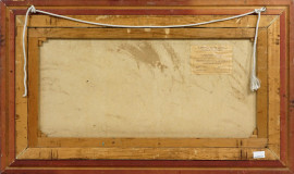 Paesaggio con ponte e viandante, olio su tela, XX secolo, cm 120x59,5, entro cornice
