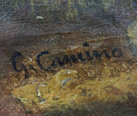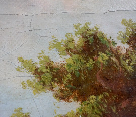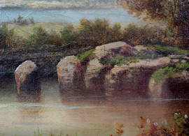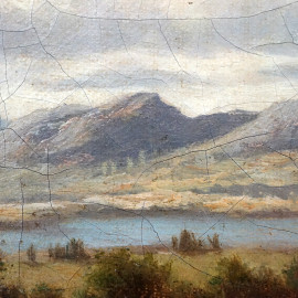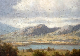 Paesaggio lacustre, olio su tela, firmato, cm 24x48, entro cornice