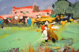 Paesaggio, olio su masonite, cm 24x30, firmato, entro cornice