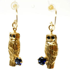 Paio di orecchini di bigiotteria a forma di gufo, cm 3,5
