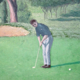 Partita a golf, olio su tela, cm 45x35, siglato in basso a destra TD