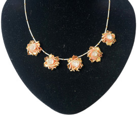 Parure composta da una collana in argento e vetro e un paio di orecchini in vetro con clip in metallo argentato, misura max cm 42, peso lordo collana gr. 18 (difetti)