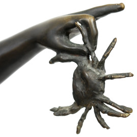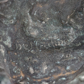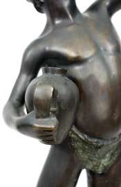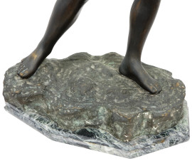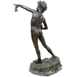 Pescatorello, scultura in bronzo, base in marmo verde, a firma De Martino, cm h 111 circa