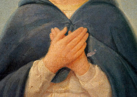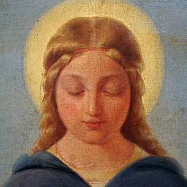 Pittore nazareno del XIX secolo, Vergine in preghiera, olio su tela, cm 57x45, entro cornice