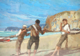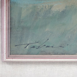 Ritorno dalla pesca, olio su tela, firmato in basso a sinistra, cm 60x89,5, entro cornice
