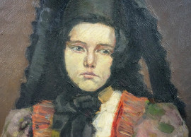 Ritratto di donna spagnola, olio su cartone, cm 54.5x34.5, XX secolo, entro cornice