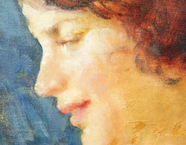 Ritratto femminile, olio su tela riportato su cartone, firmato, cm 50x35, entro cornice