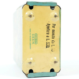 Salvadanaio vintage in latta, produzione Germania dell'Ovest, altezza cm 14, (difetti)