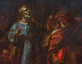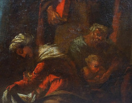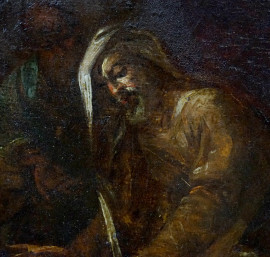 Scena biblica, olio su tavola, cm 37.5x58.5, XIX secolo, entro cornice
