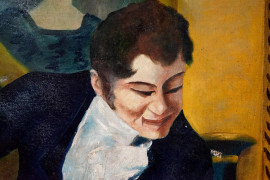 Scena galante, XX secolo, olio su tela, cm 110x158, entro cornice (difetti)
