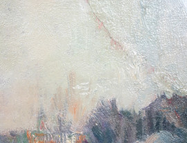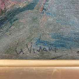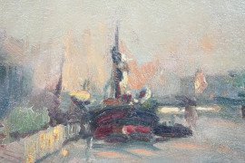 Scorcio di citta, olio su cartone, cm 18.5x27, firmato, entro cornice