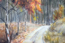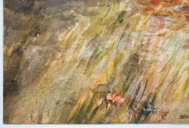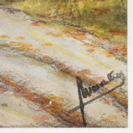 Scorcio di sentiero nel bosco, acquerello su carta, firmato in basso a destra, cm 29x22, entro cornice