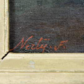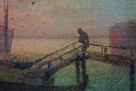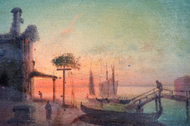 Scorcio di Venezia al tramonto, olio su tela, firmato, cm 16,5x21,5, entro cornice