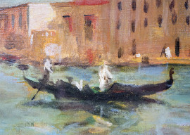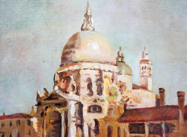 Scorcio di Venezia, olio su tela riportato su cartone, firmato, cm 36x47, entro cornice