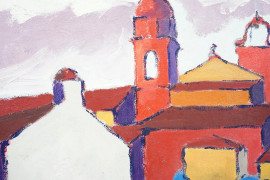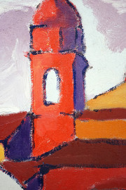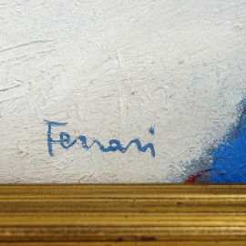 Scorcio urbano, olio su tela, firmato in basso a destra Ferrari, cm 50x65, entro cornice